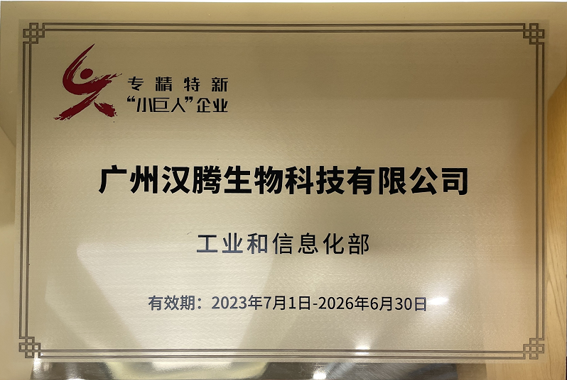 此次荣获国家级“专精特新”企业称号,距离上一次继荣获广东省专精特新企业称号不到一年,标志着政府主管部门高度认可和充分肯定汉腾生物的发展潜力、创新能力和专业技术水平!